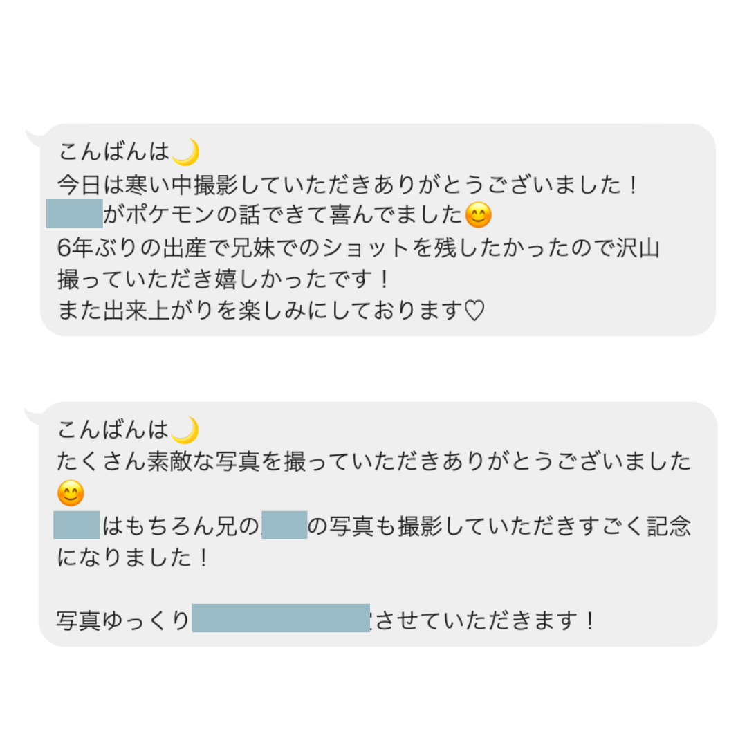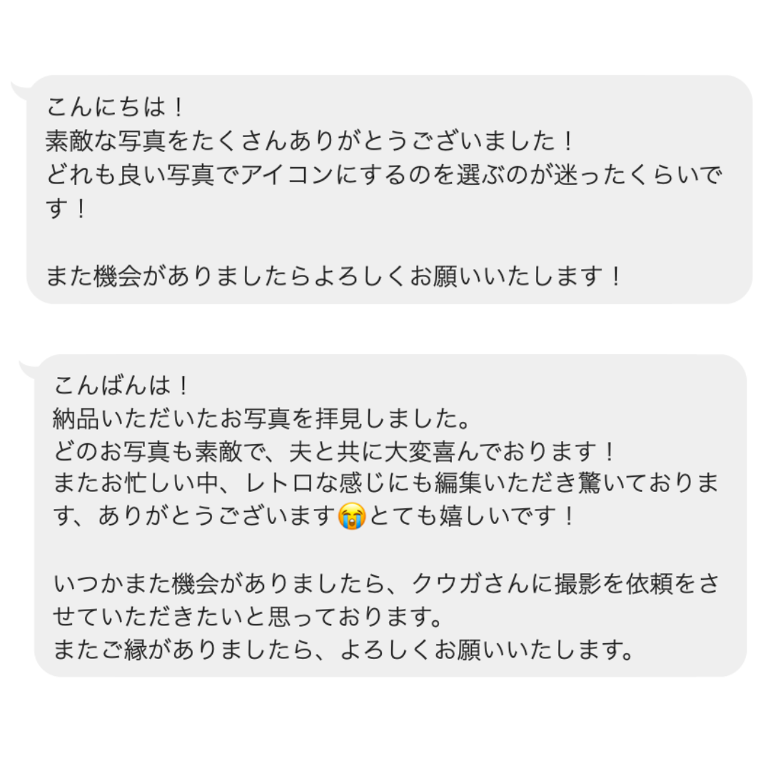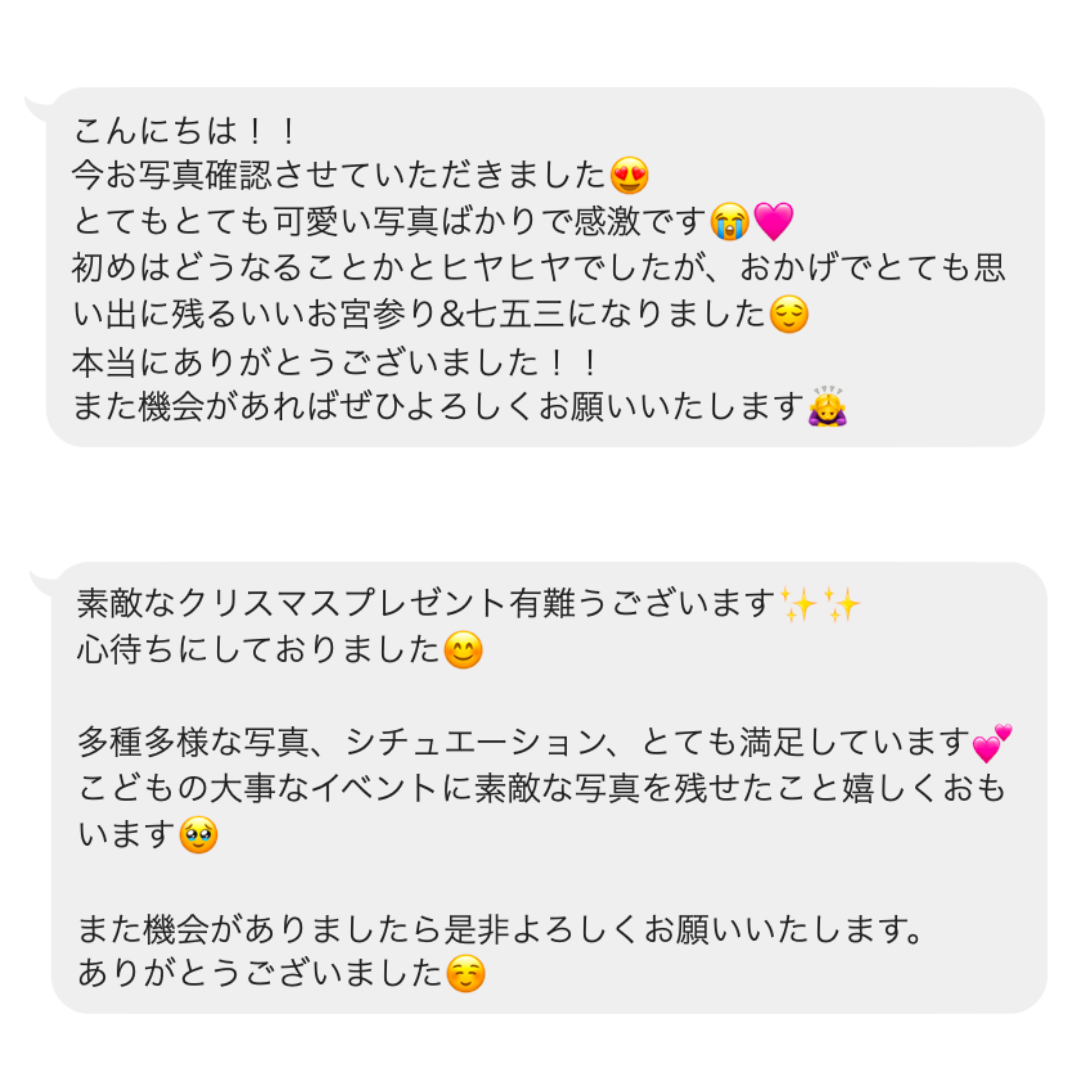 撮影後にお客様から頂いた嬉しいメッセージたち