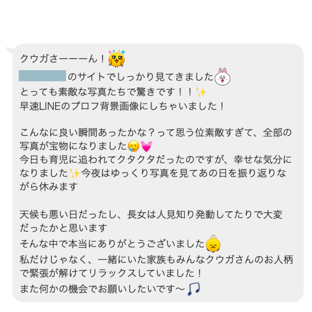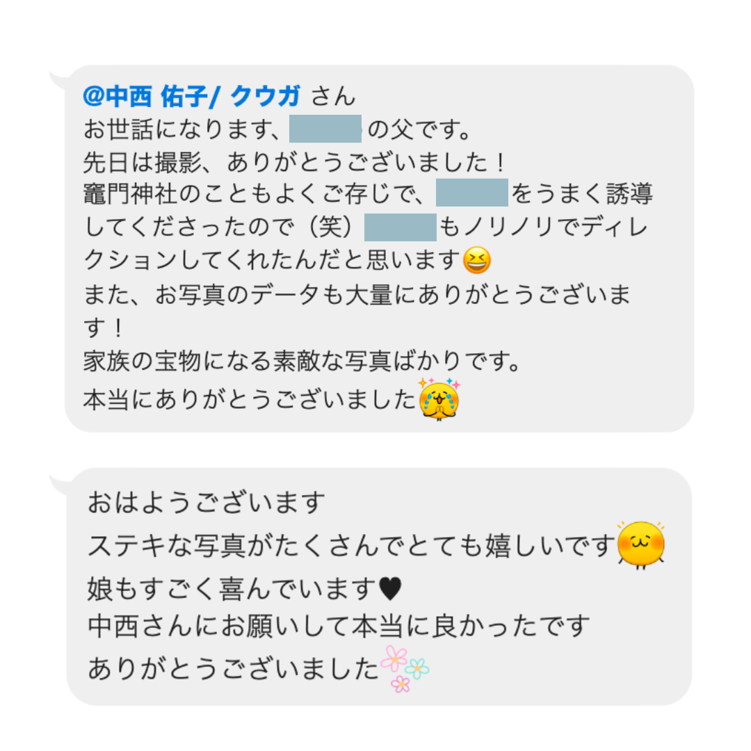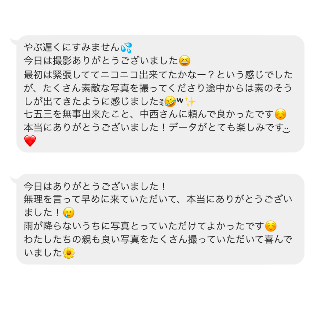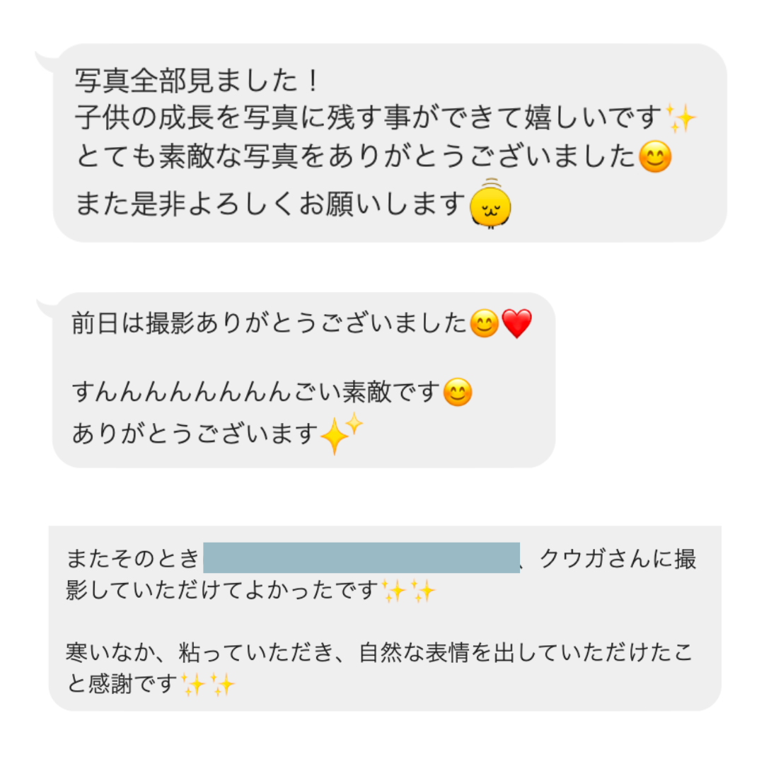撮影後にお客様から頂いた嬉しいメッセージたち