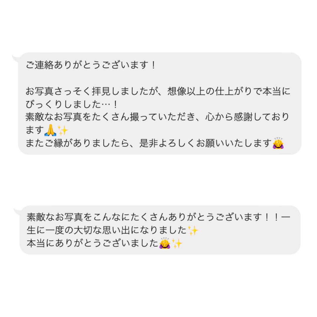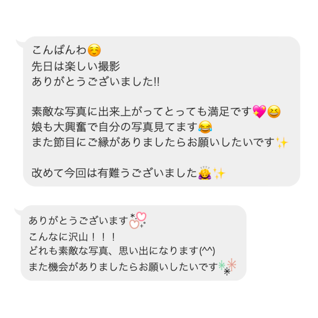 撮影後にお客様から頂いた嬉しいメッセージたち
